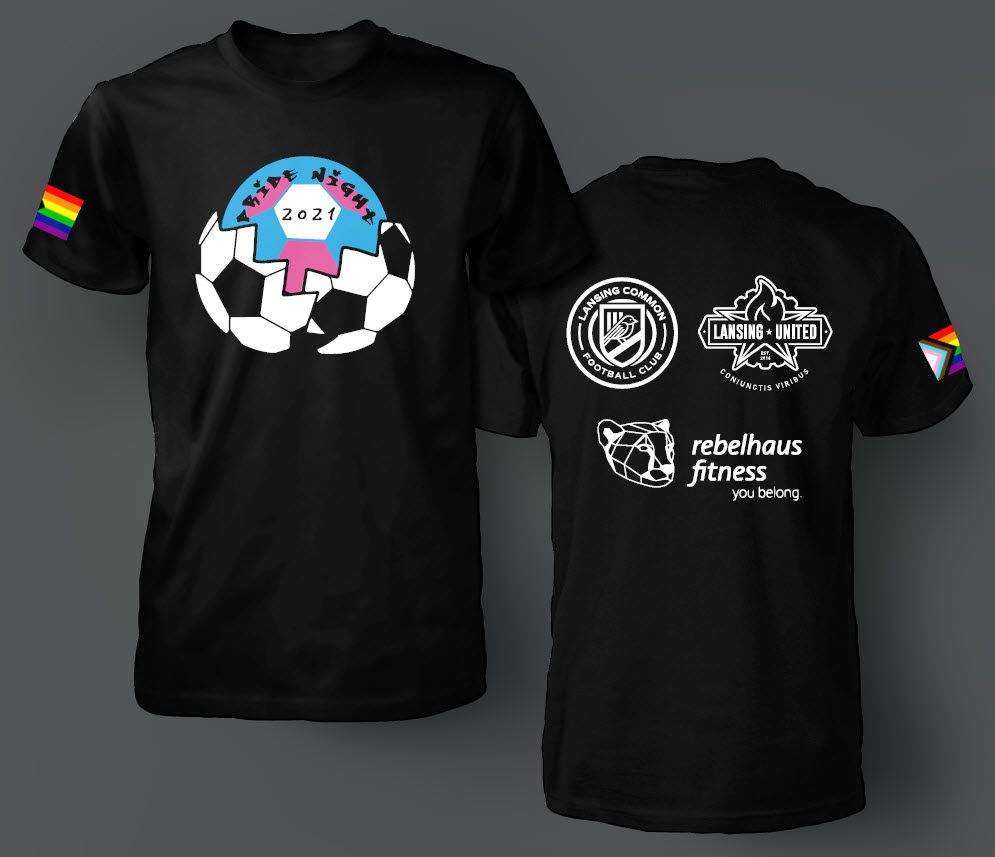 Limited edition Pride Night t-shirts designed by a local youth artist will be available for purchase, and Lansing Common players will wear special Pride Night warm-up tops, which will be sold following the match. Proceeds from both will be donated to rebelhaus fitness to support the launch of its queer and trans youth fitness community.